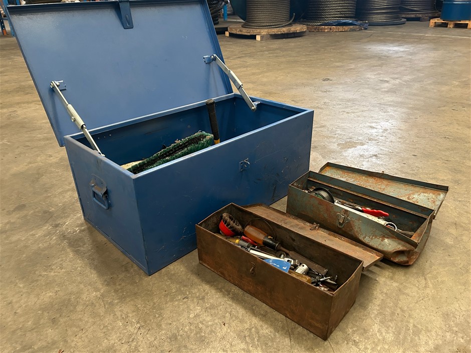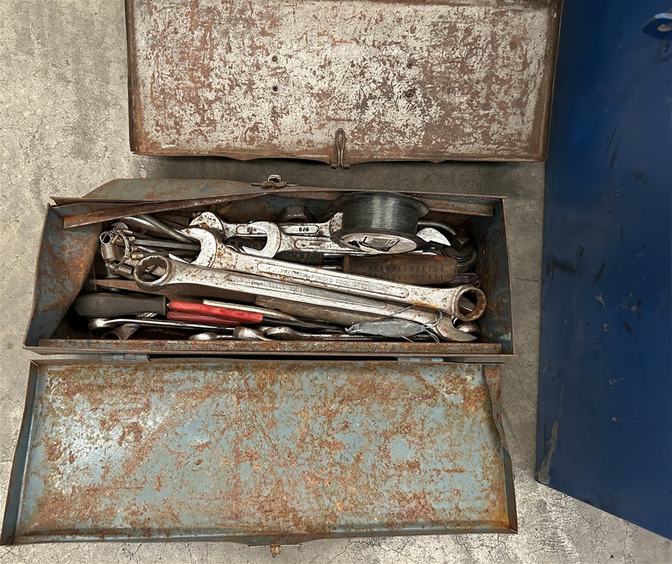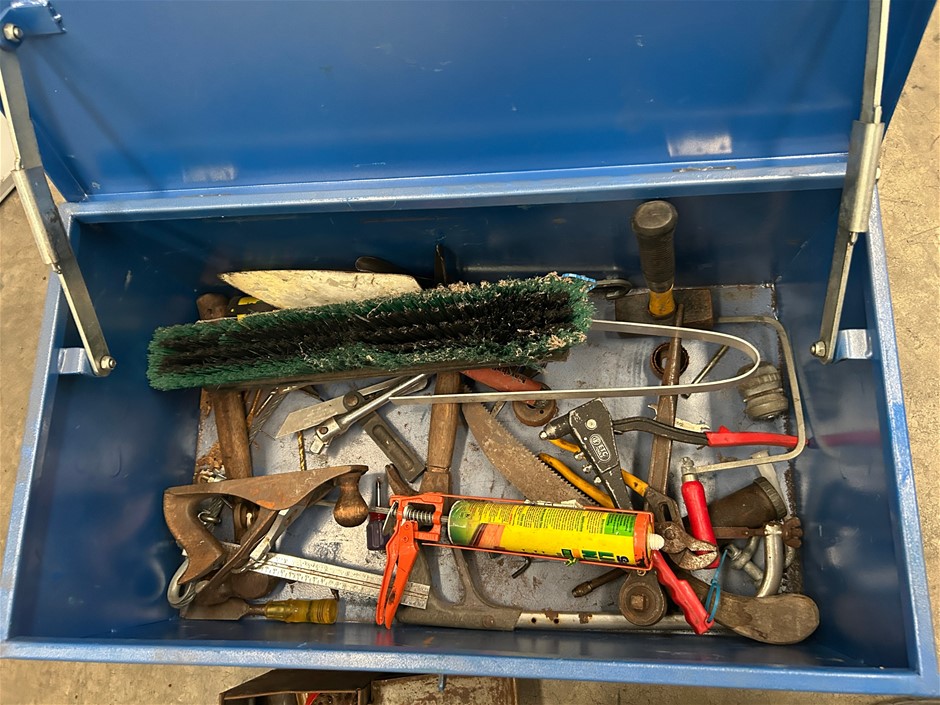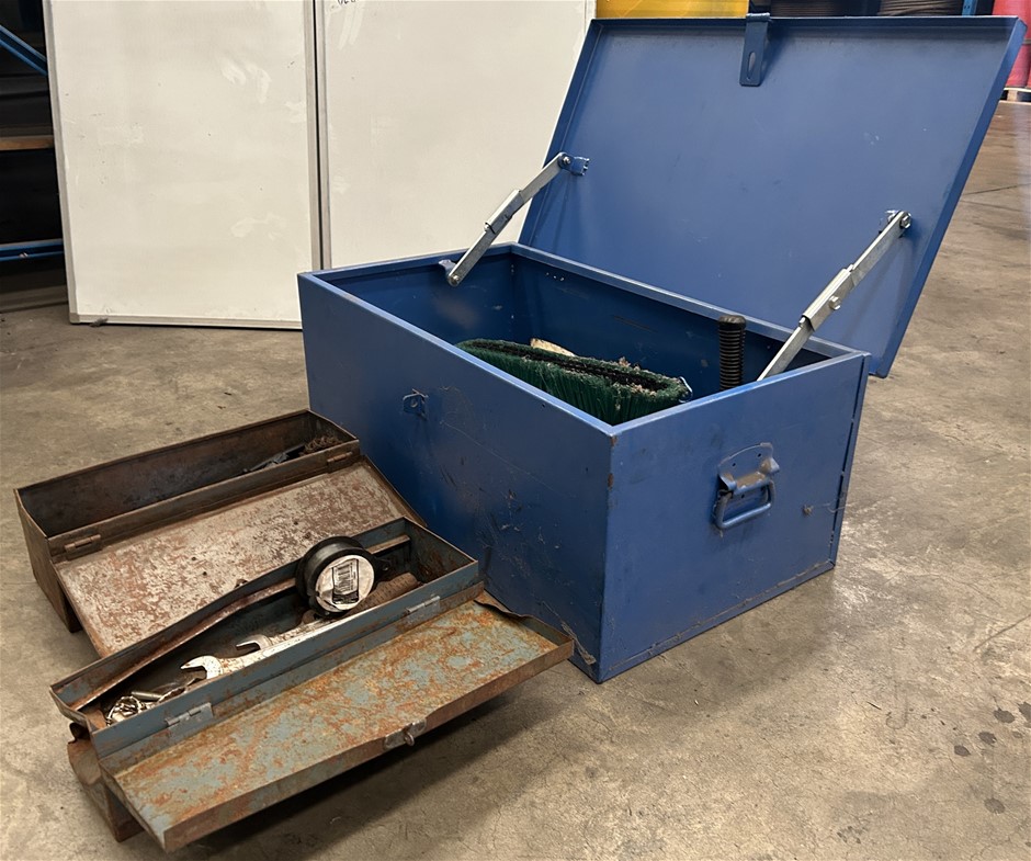 1 x large blue steel toolbox with hinged lid ()