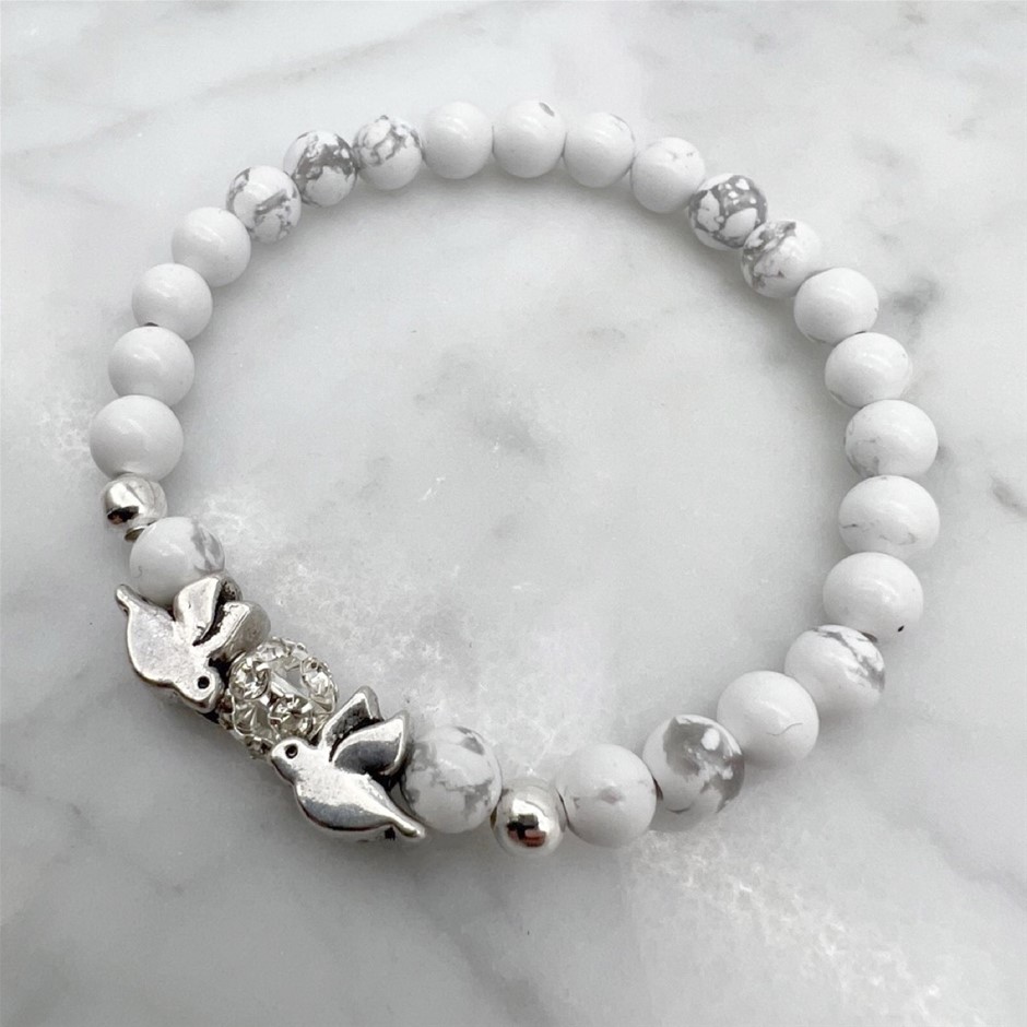 6mm Howlite Gemstone and Rhinestone Dove Bracelet