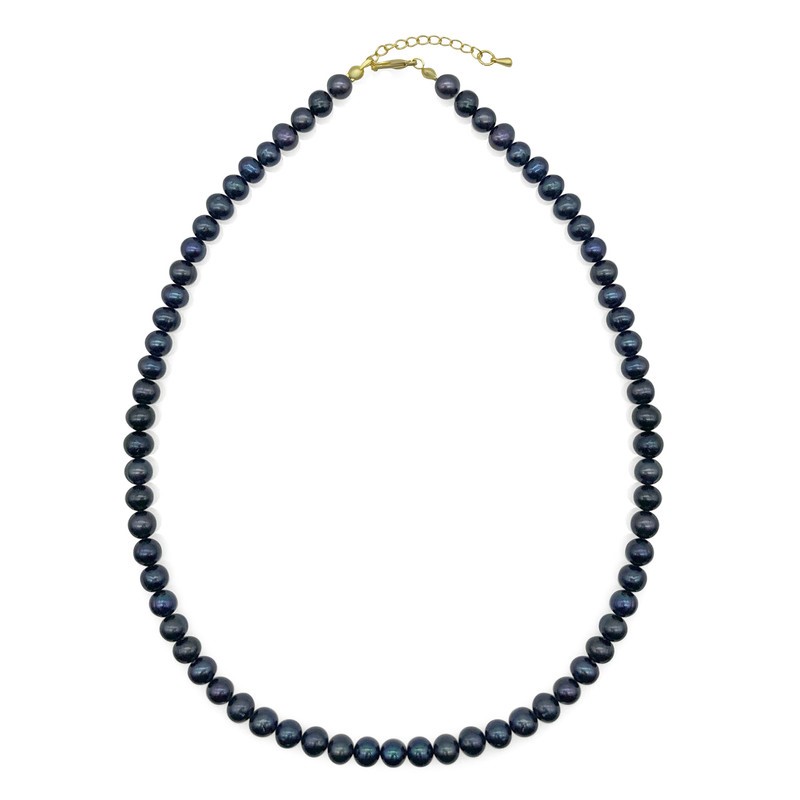 Natural Black 7-8mm Potato Shape Freshwater Pearl with Real 18k Gold Plated Necklace.