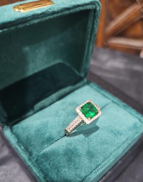 • Stones: 1.5ct Princess CutSimulated VVS1 brilliant-cut Green & White diamonds
