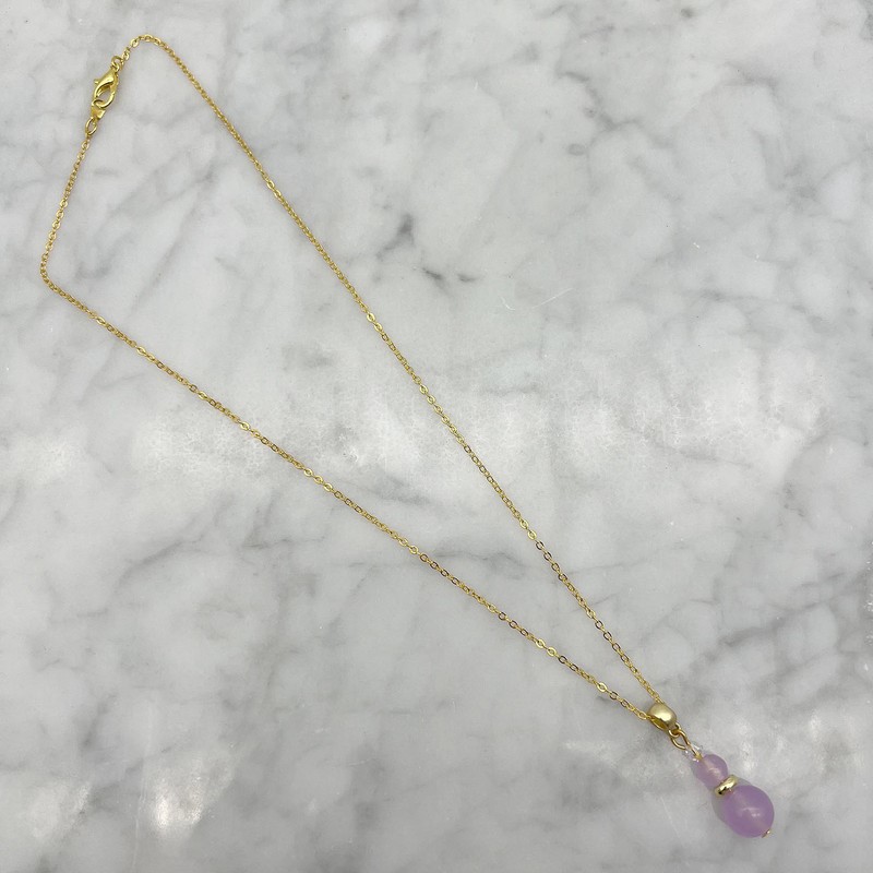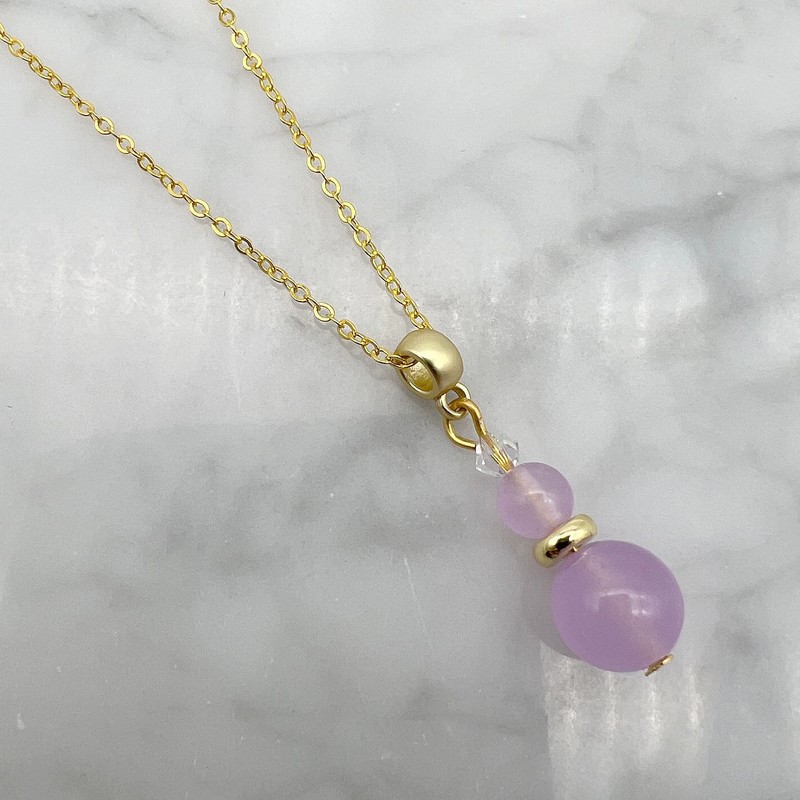 Genuine Lilac Colour Malaysia Jade `Quartz` & Swarovski® Austrian Crystal Gold Plated Pendant Necklace