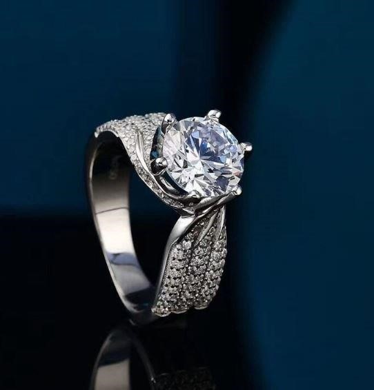 2.0ct GRA Moissanite white Pearl Brilliant Cut 925 Sterling Silver Ring-VVS1