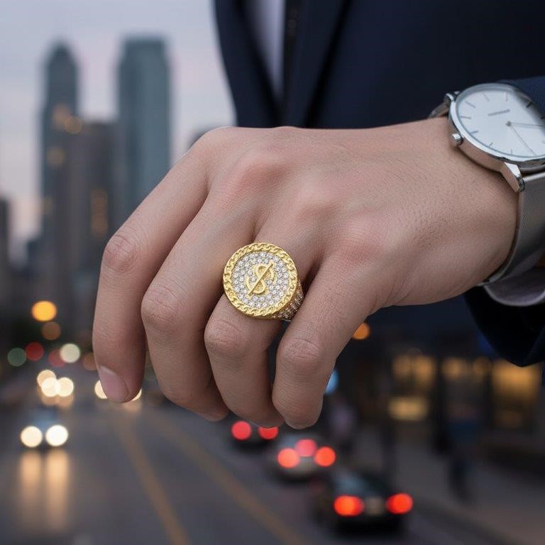 • Make a bold statement with this luxurious 925 Silver/Italy Ring , featuring an iconic design adorned with brilliant-cut simulated diamonds for stunning shine. Crafted in Italy and stamped S925, this piece is made of high-quality 925 silver with a gold overlay, combining durability with exquisite style.