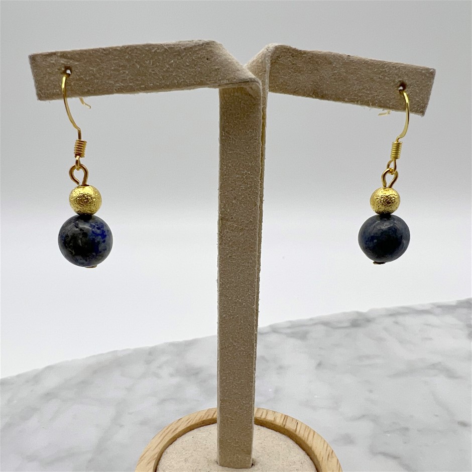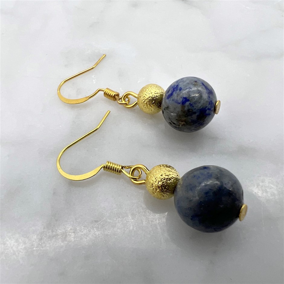 Lapis Lazuli Gemstone Gold Stardust Drop Earrings