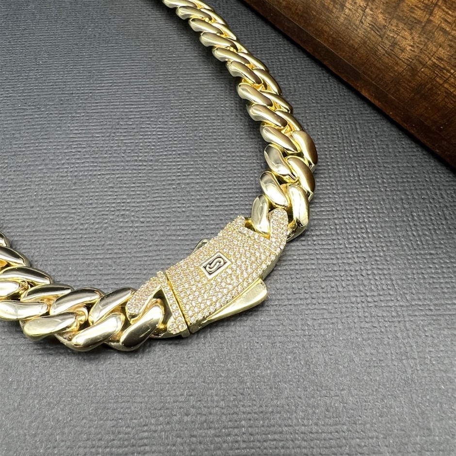 Opulent Galleria - 14K Gold-Filled Solid Cuban Necklace, Simulated Diamonds, 10MM Wide - 66cm