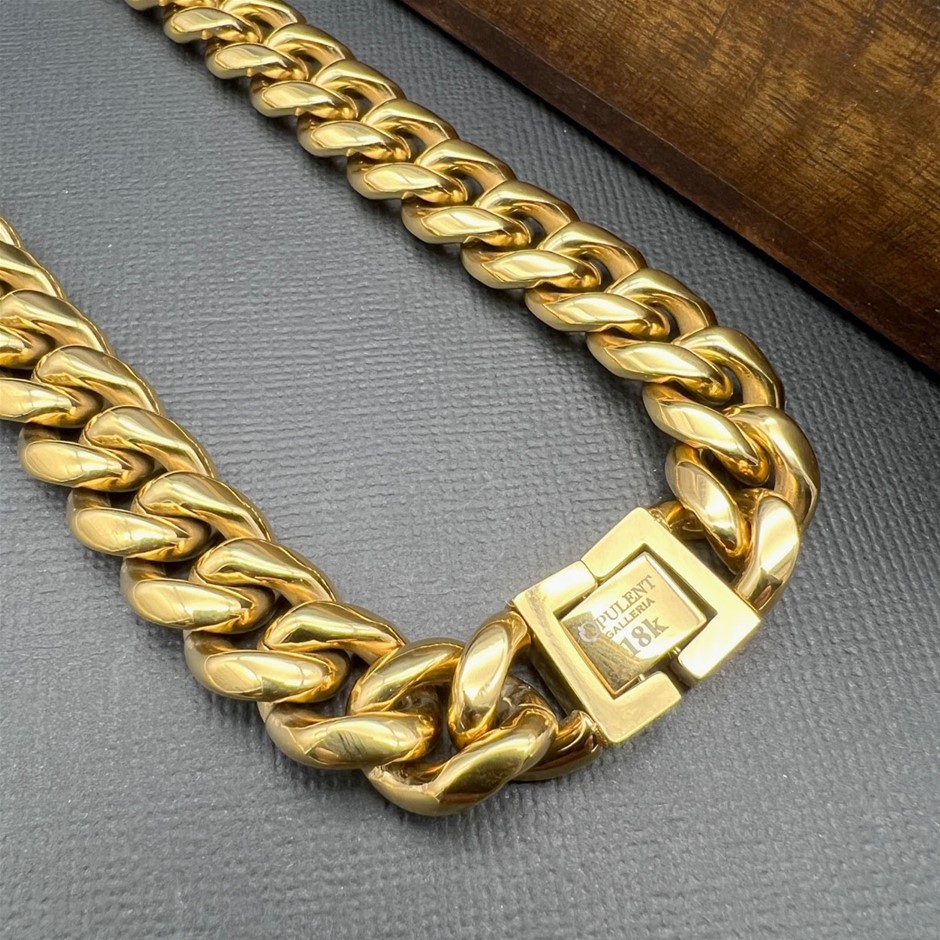 Opulent Galleria - 18K Gold-Filled Cuban Chain Necklace, 18MM Wide – 60.9cm