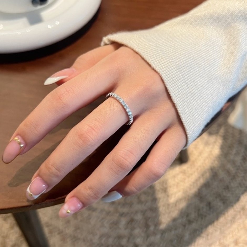 0.84ct GRA Certified Moissanite 925 Sterling Silver Band Ring - Size 6