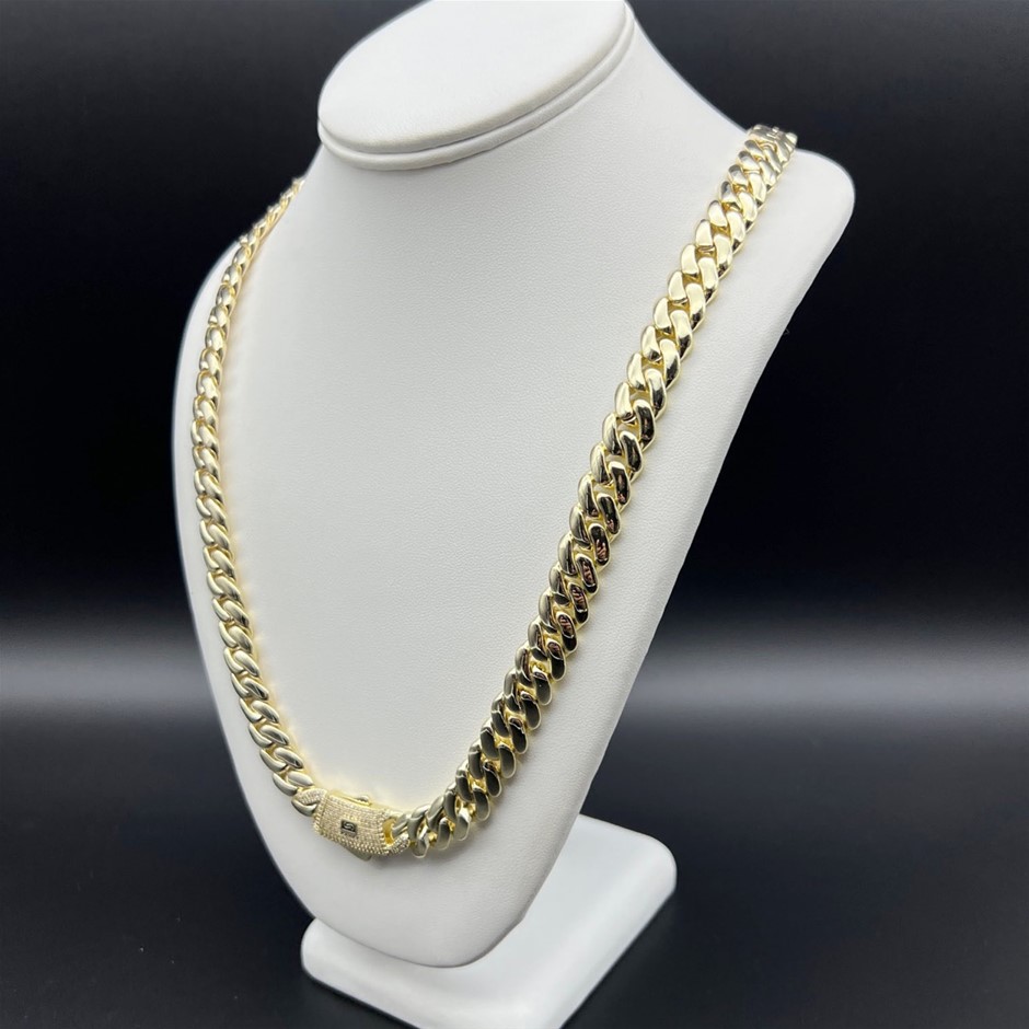 14K Gold-Filled Solid Cuban Necklace, Simulated Diamonds, 10MM Wide - 66cm
