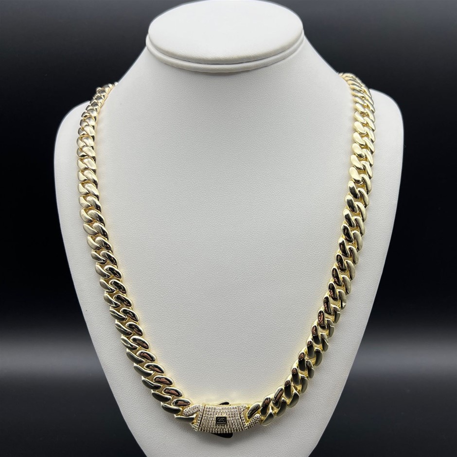 Opulent Galleria - 14K Gold-Filled Solid Cuban Necklace, Simulated Diamonds, 10MM Wide - 66cm