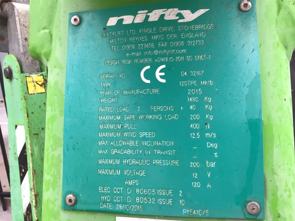 2015 NIFTYLIFT 120TPB mk1b Boom Lift