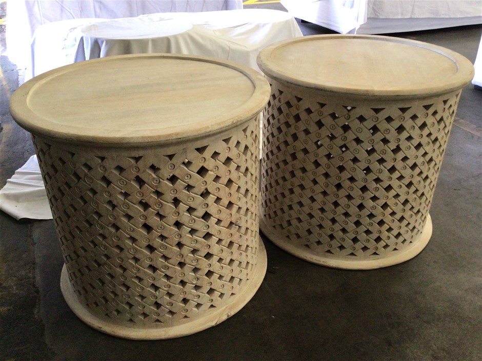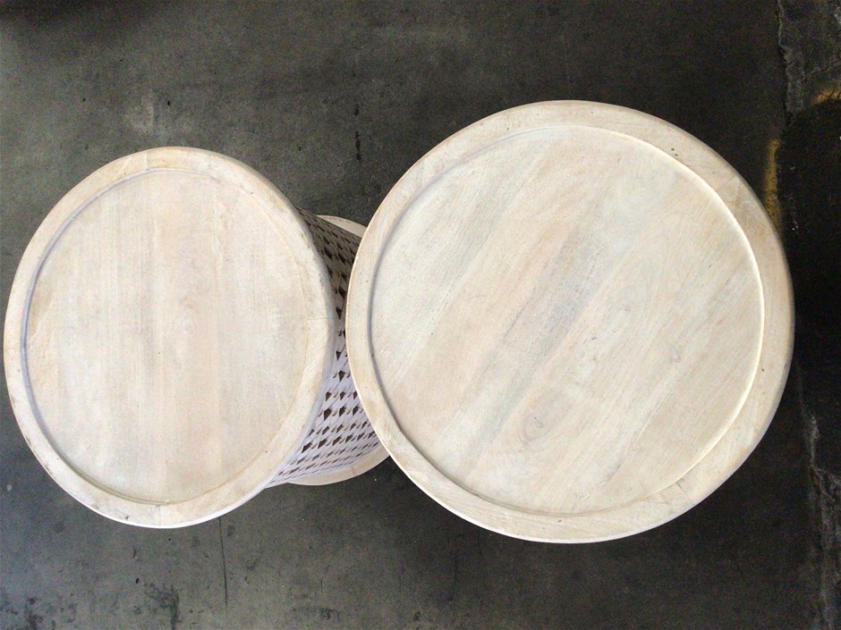 2 x White Wash Timber End Tables