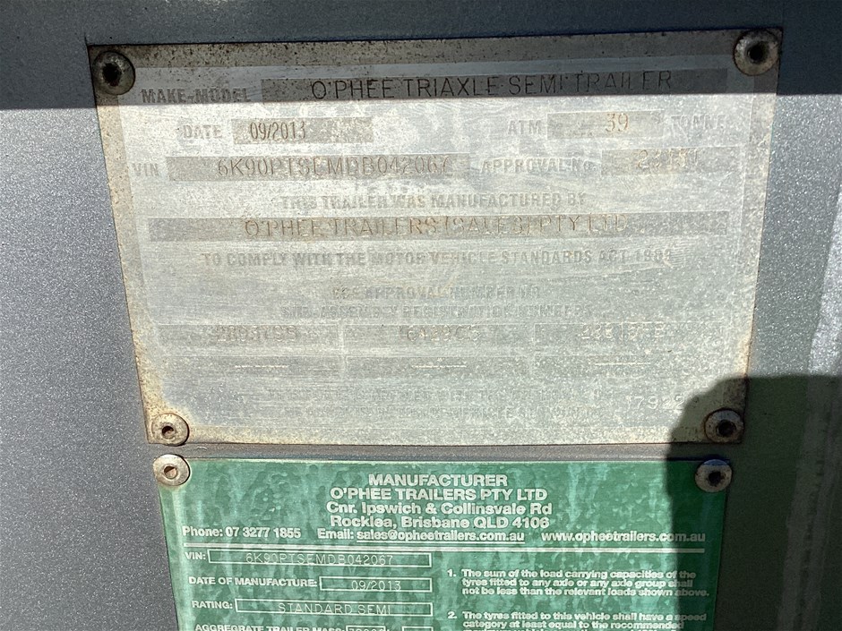 2013 O Phee Tri Axle Semi Trailer Side Lifter Trailer