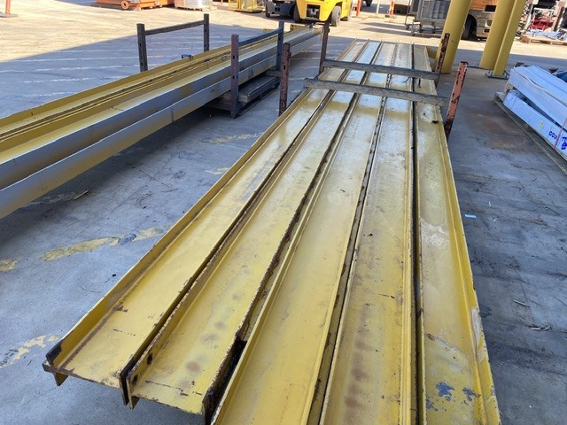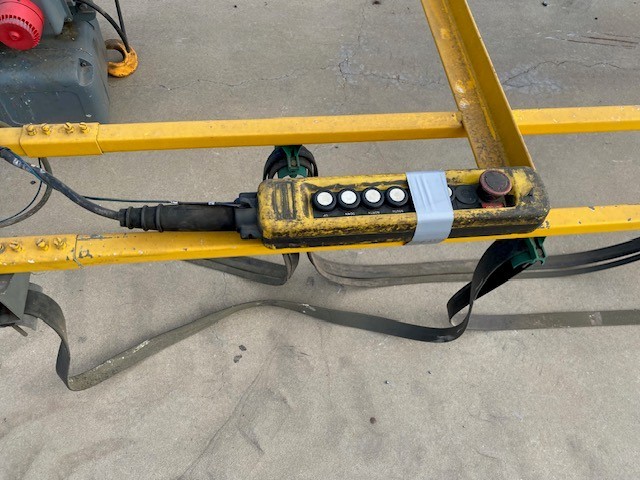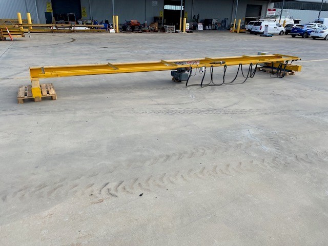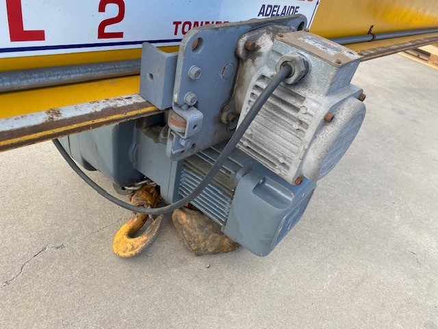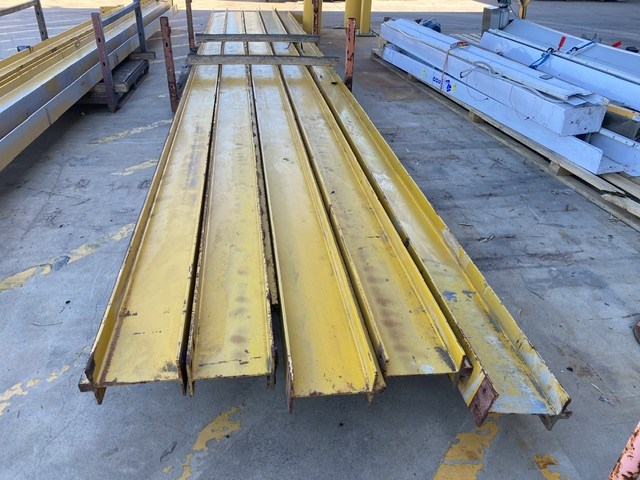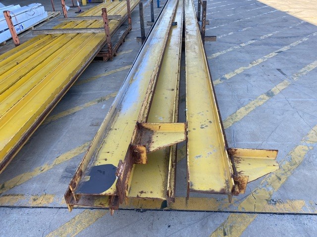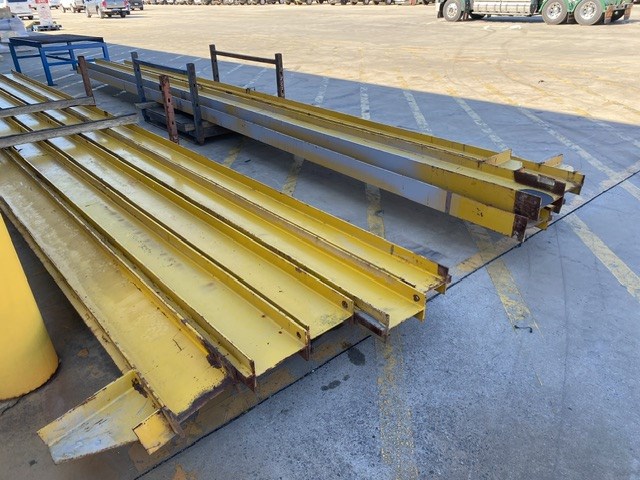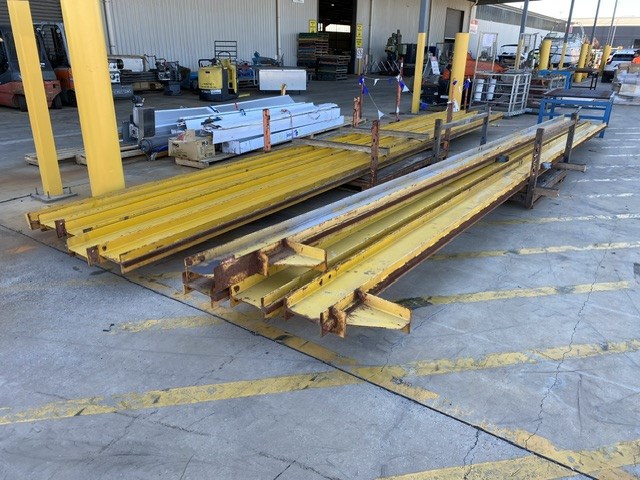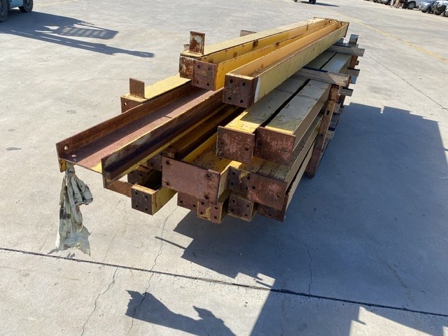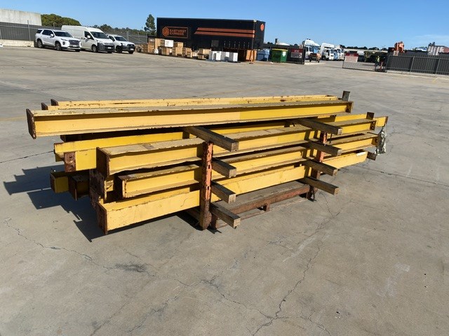 • Consisting of hoist SWL 2 ton, Pendant controller, 3 phase, 9 steel beams approx 8900 - 9150mm(L) in 2 stillages, stillage with assorted beams up to, 3700 & 4600mm(L)