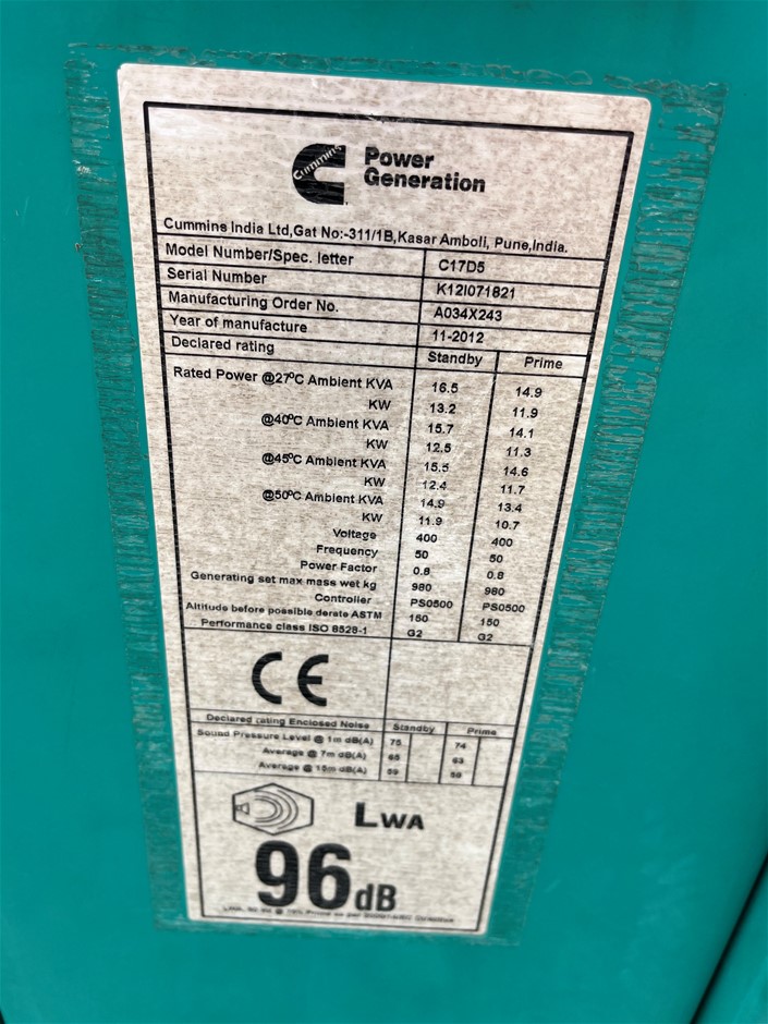 Cummins 17kva Genset (GS738)