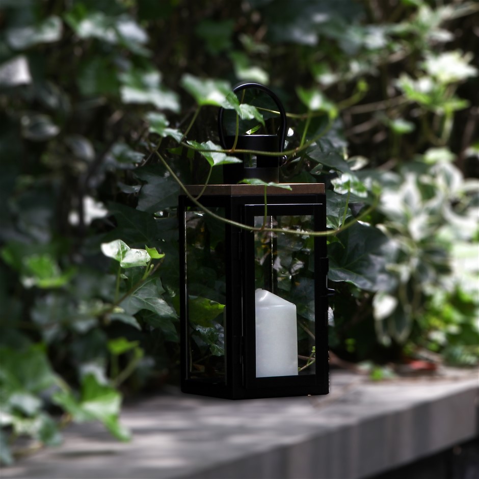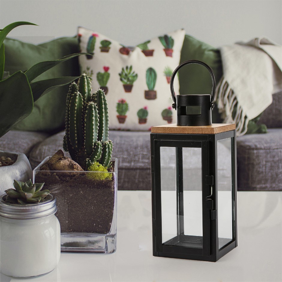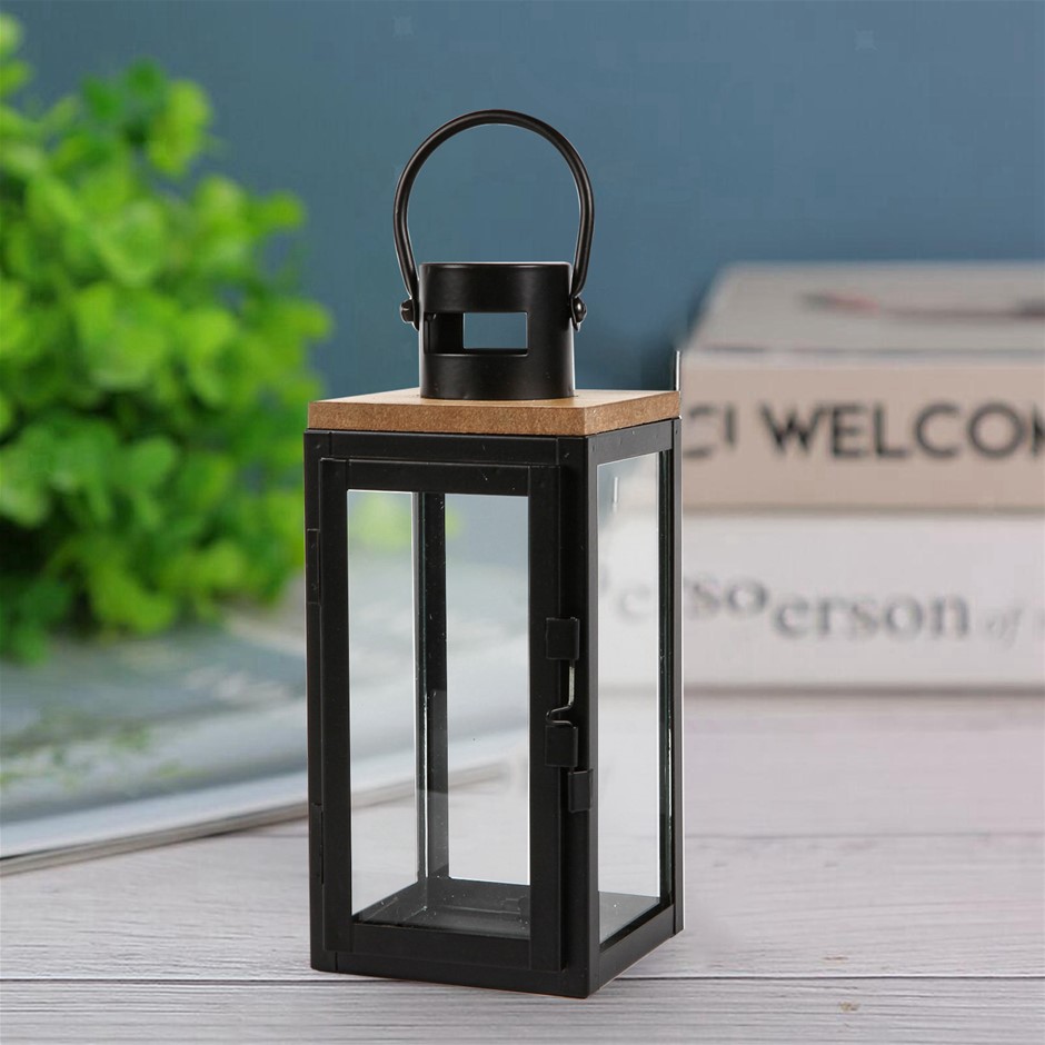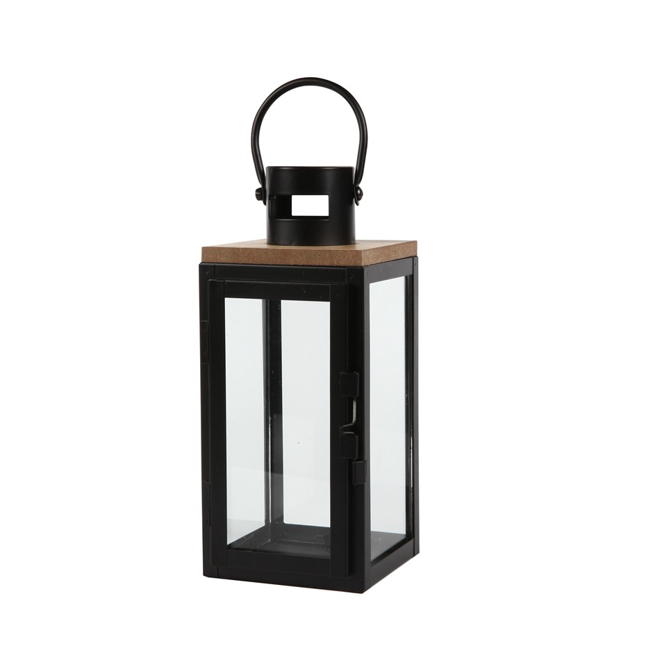 Home Decor MDF Wood & Metal Candle Lantern Black