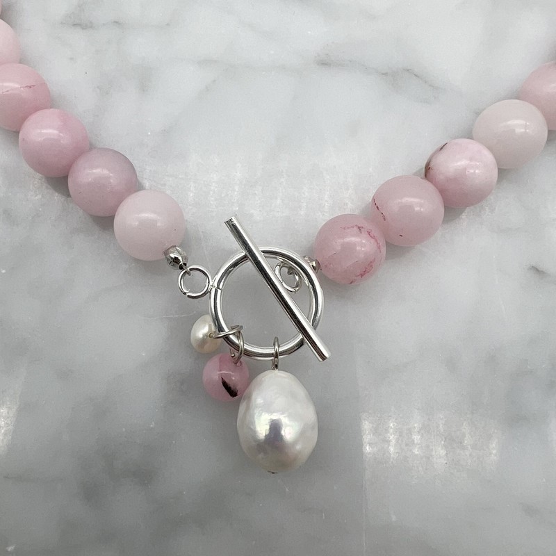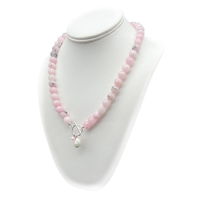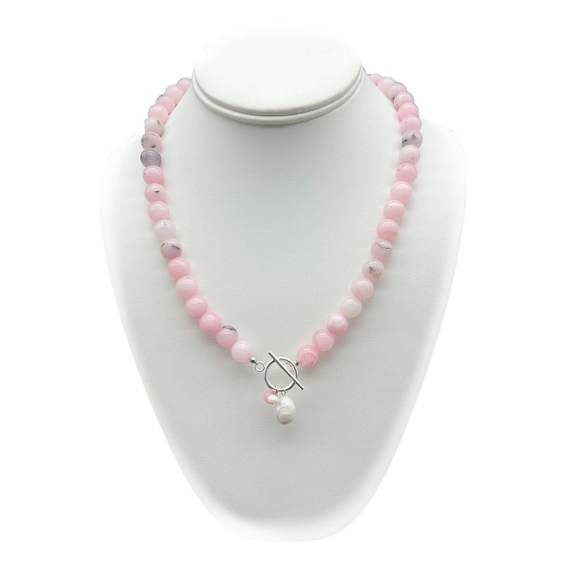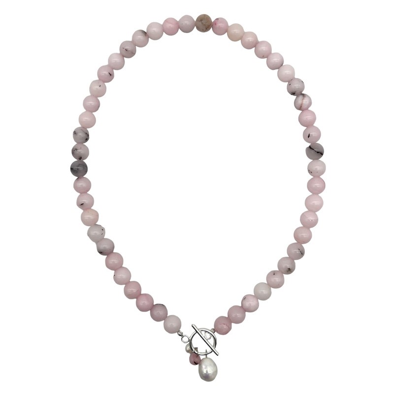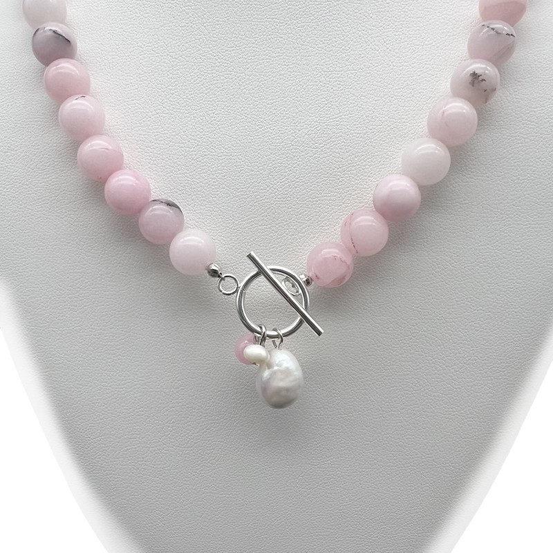10mm Cherry Blossom Jasper with `O` Toggle Gemstone Beaded Necklace.