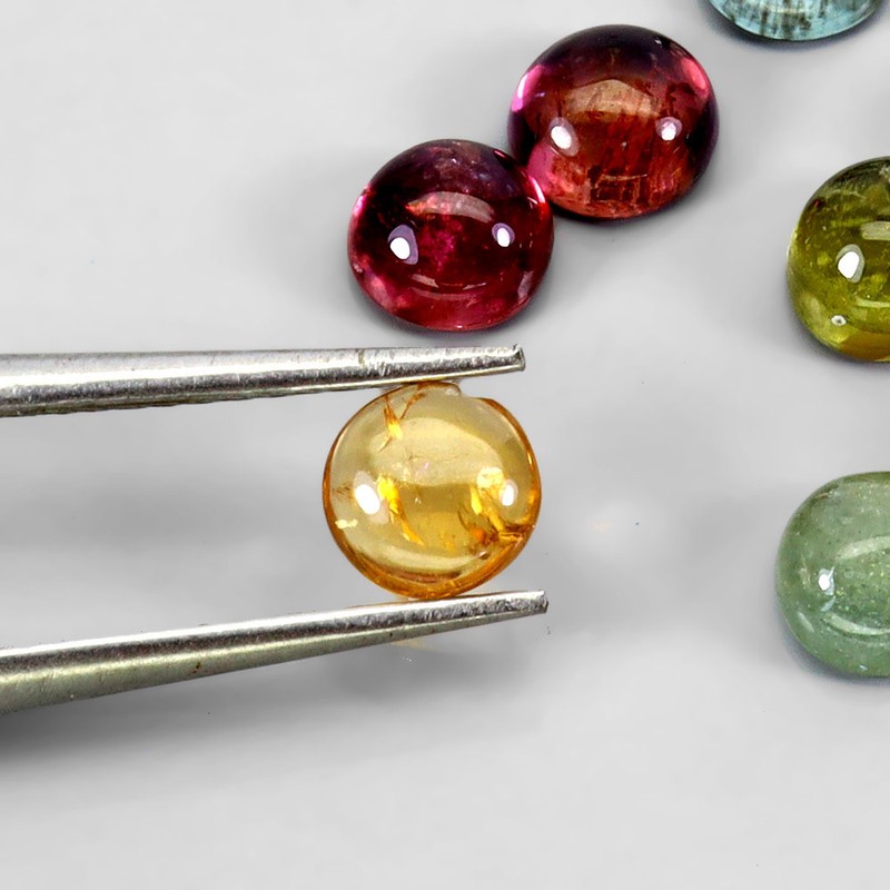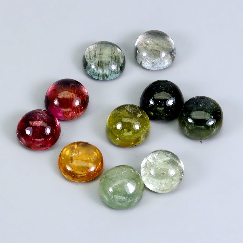 6.23ct Round Cabochon Cut Multi Colour Tourmaline Gemstones - 10Pcs