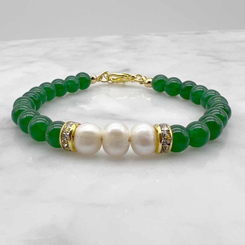 Natural 7-8mm Freshwater Pearl & Green Aventurine with Real 18k Gold Plated Bracelet