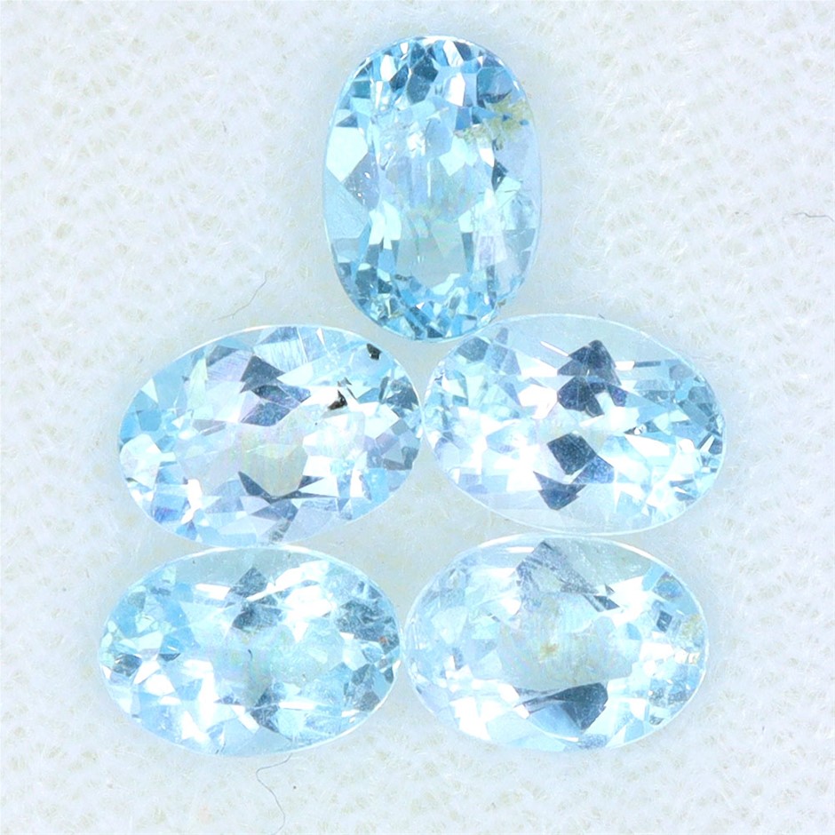 4.37ct Oval Facet Cut Sky Blue Topaz Gemstones - 5Pcs