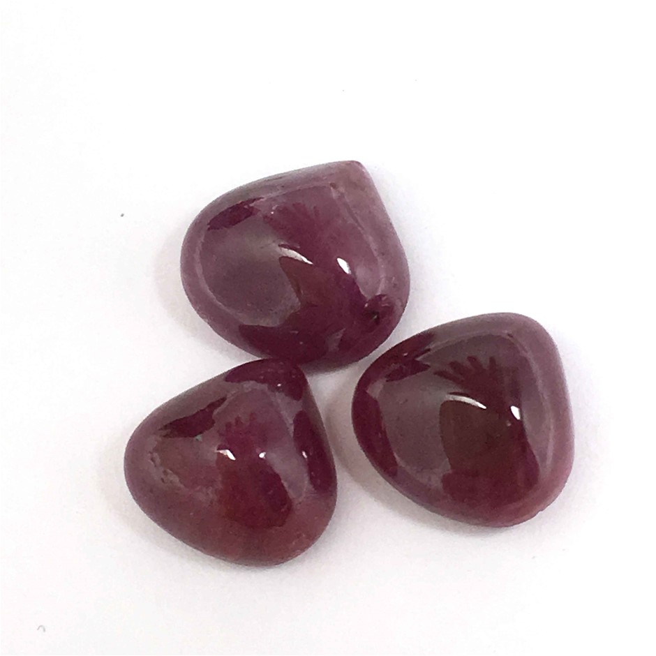 Three Loose Heart Shaped Natural Ruby Cabochons 17.65ct In Total