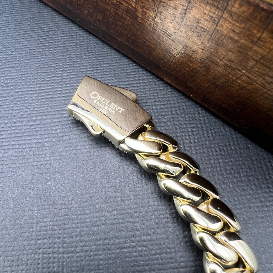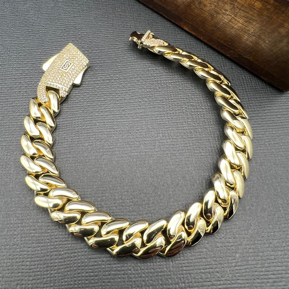 Opulent Galleria - 14K Gold-Filled Solid Cuban Bracelet, Simulated Diamonds,10MM Wide - 20.3cm