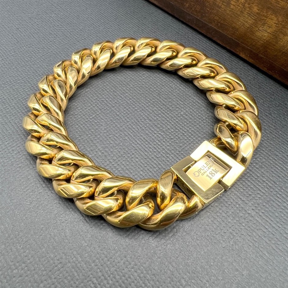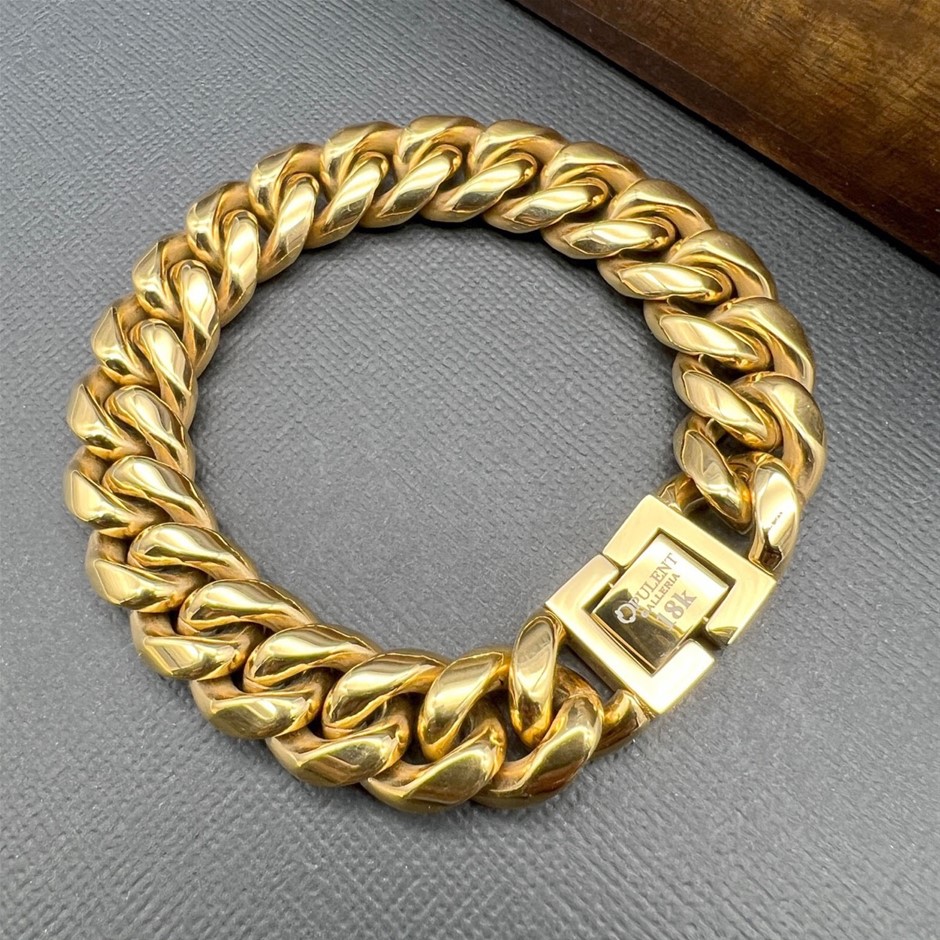 Opulent Galleria - 18k Gold-Filled Cuban Chain Bracelet, 18MM Wide – 21.5cm