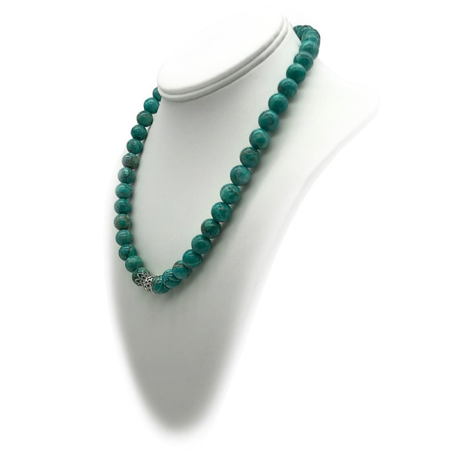 10mm Natural African Jasper Turquoise Persian Love Rhinestone Necklace, Bracelet & Earring Set.