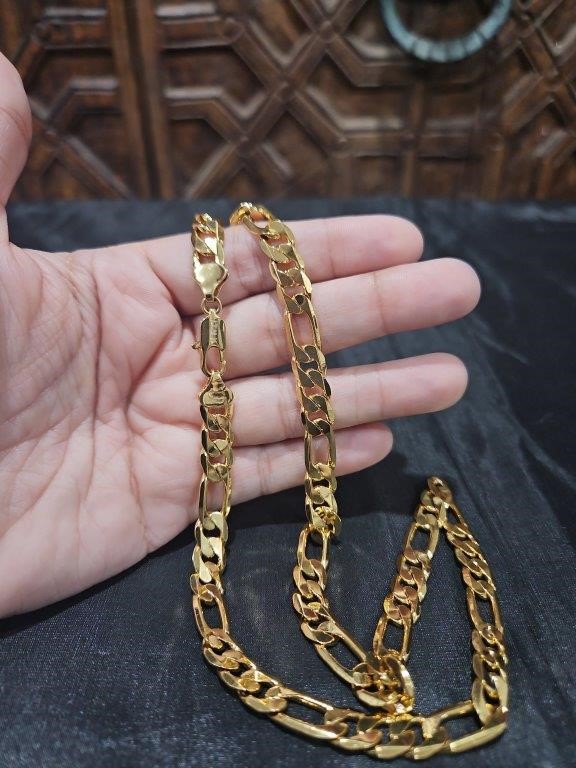 18k Italy Stamped Yellow Gold Filled Figaro Chain-Quality Guarantee-50cm-8mm
