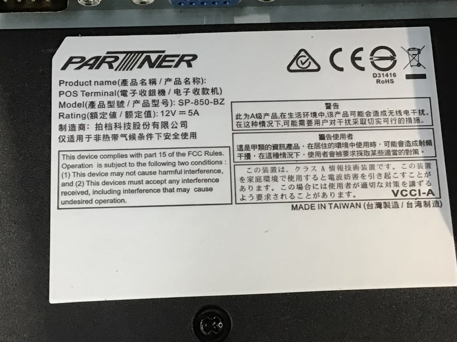 • Partner POS System Comprising; 1 x Partner POS display. 1 x Partner docket printer. 1 x cash drawer. 1 x Yoximo eftpos terminal. Quantity of Assorted cables and 240 volt power adapters.