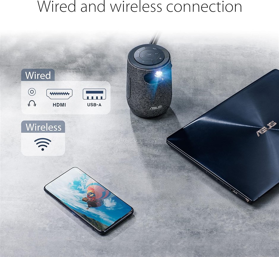 ASUS ZenBeam Latte L1 Portable LED Projector Full HD Supported, Sound by Harman Kardon, 10 W Bluetooth Speaker, 3-Hour Video Playback, Wireless Projection, Built-in Battery, USB Type-A, HDMI. (Code: B092PTRP2H) (333431-21)