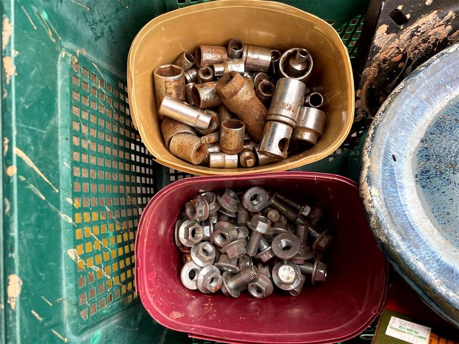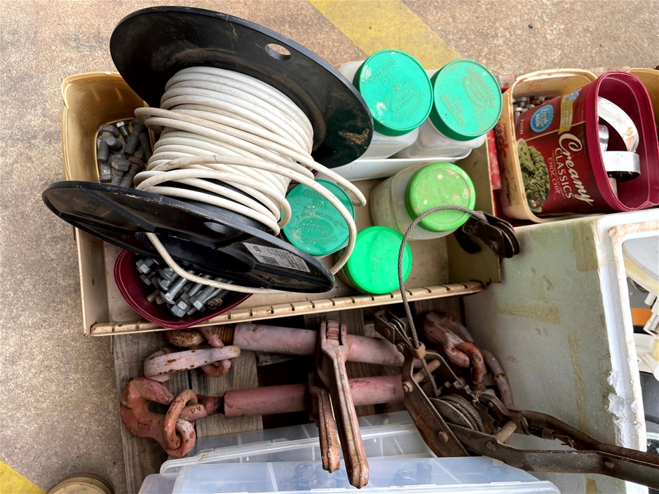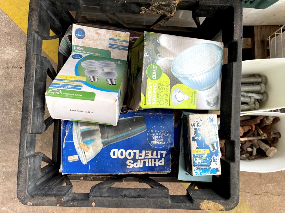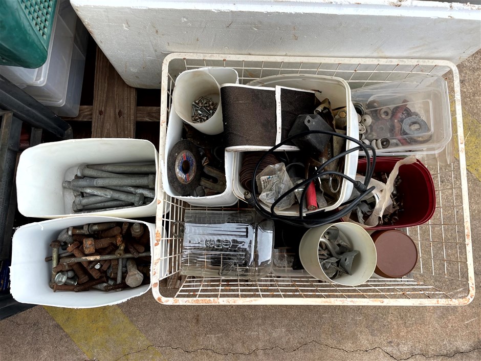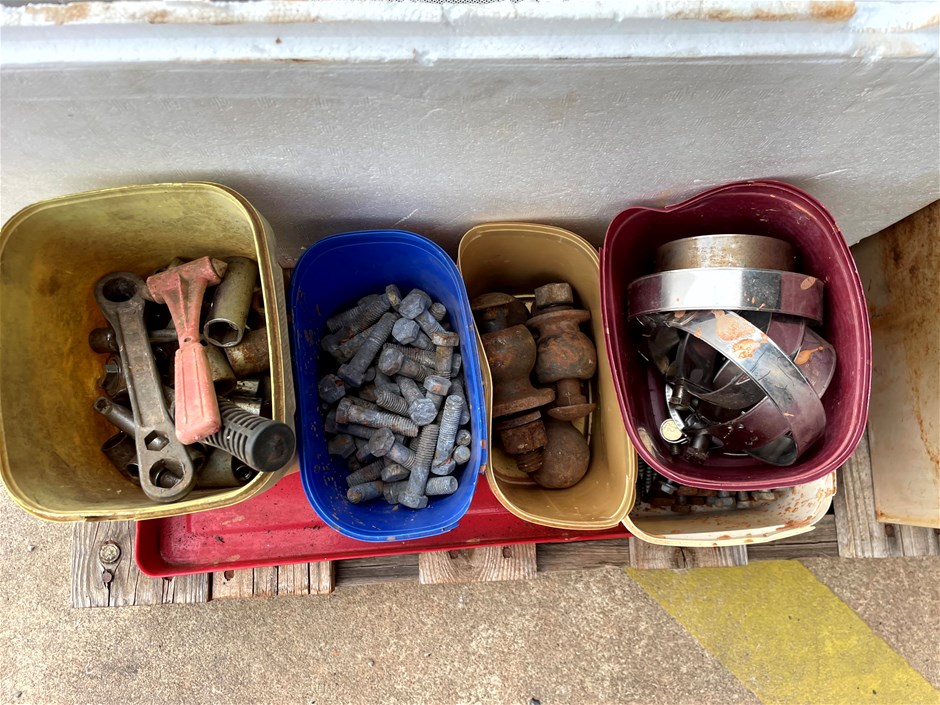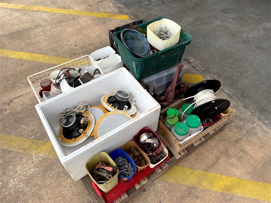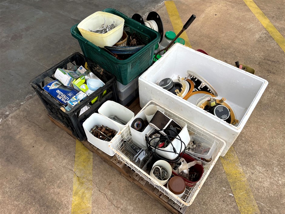 Pallet of assorted bolts, Lights and Brackets
