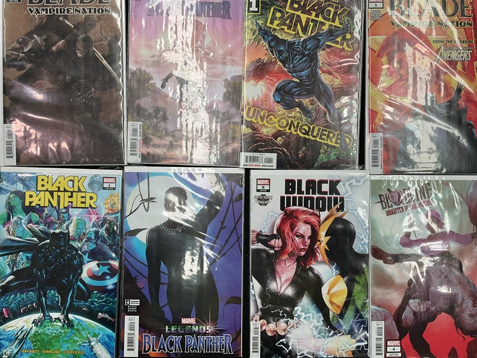 • Box Of Black Panther, Black Widow & Blade Comics.