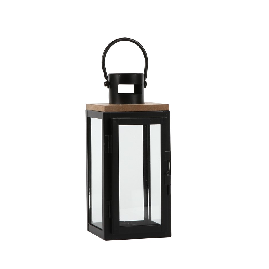 Home Decor MDF Wood & Metal Candle Lantern Black