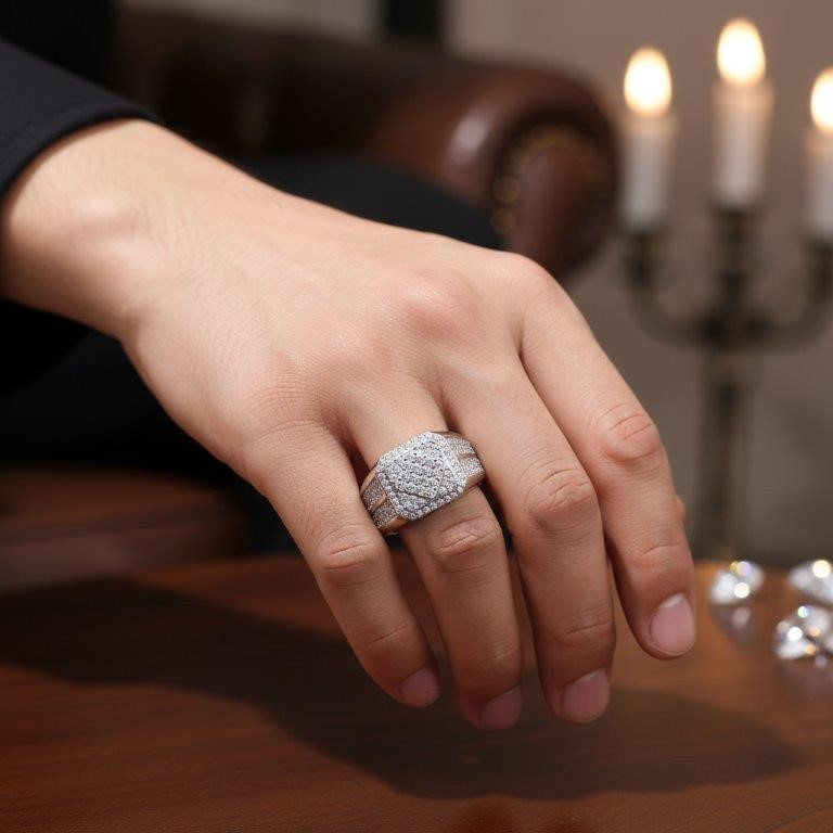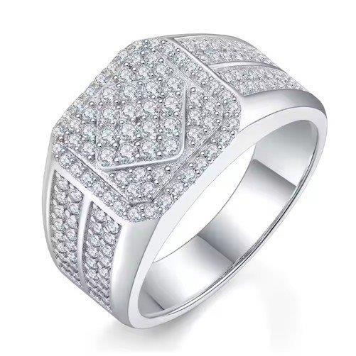 GRA Moissanite White 18k Real Gold Vermeil Men`s Ring -12US-VVS1