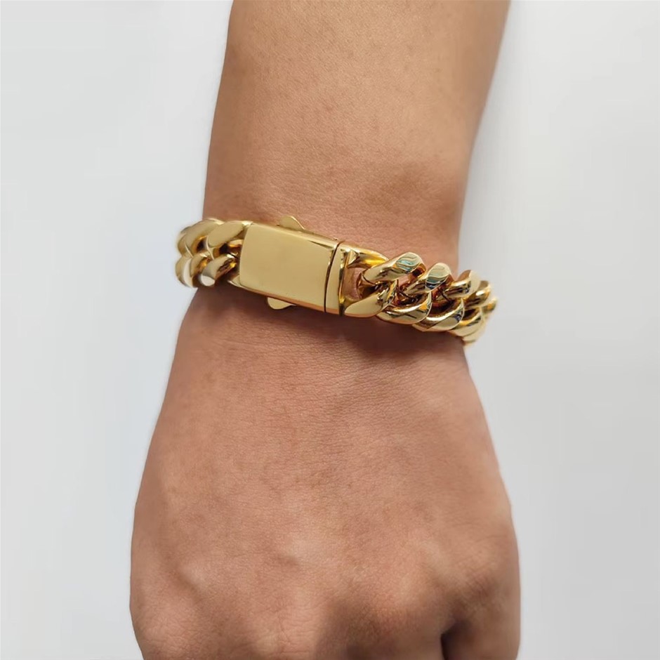 18K Gold-Filled Cuban Chain Bracelet, 12MM Wide - 20.3cm