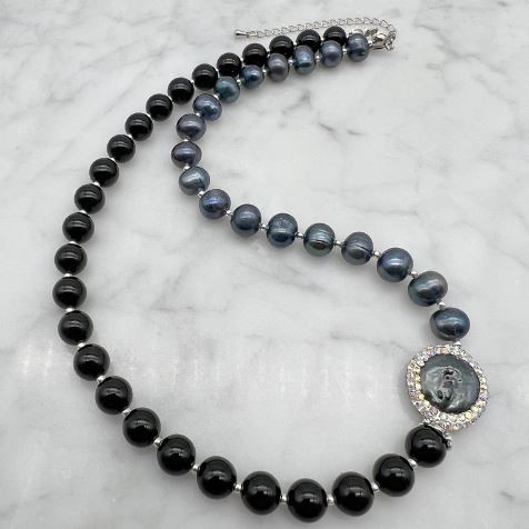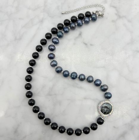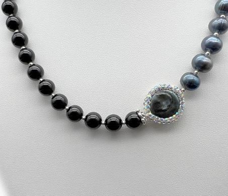 • Stone: Baroque with Rhinestone Edging, Freshwater Pearls & Black Agate