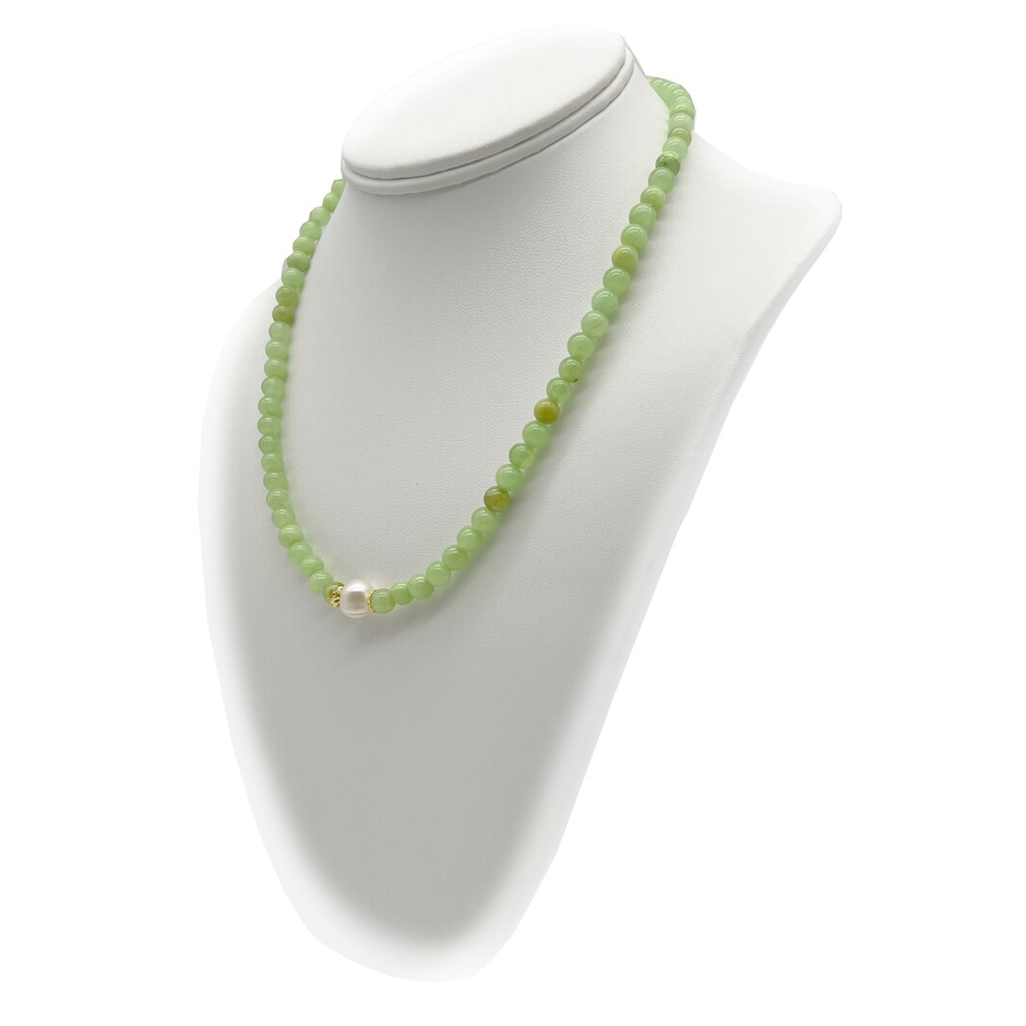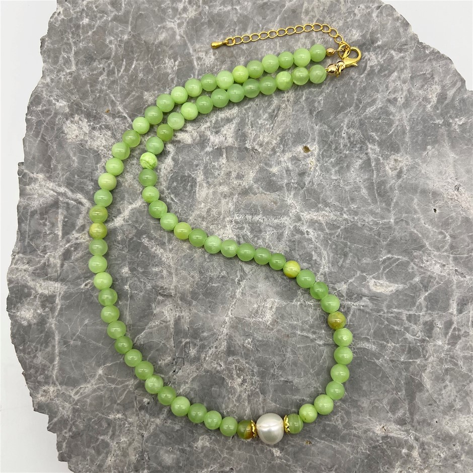 Natural 10mm White Freshwater Pearls with Flower Jade Quartz Gemstone Necklace. Product Specifications: