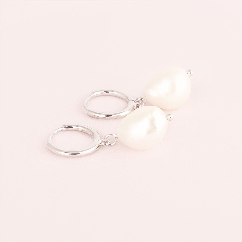 Fresh Water Pearl 925 Sterling Silver Huggie Hoop Earrings
