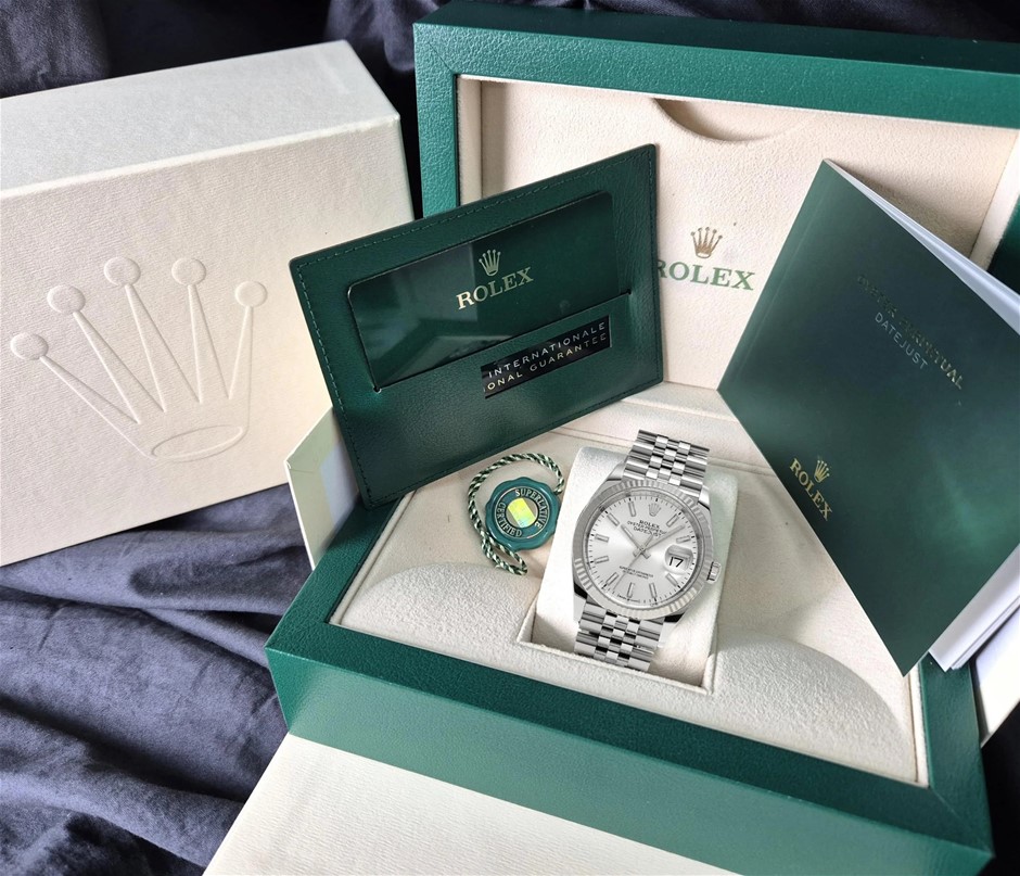 ROLEX DATEJUST 36MM WHITE ROLESOR 126234 AUTOMATIC SILVER DIAL BXP & COA