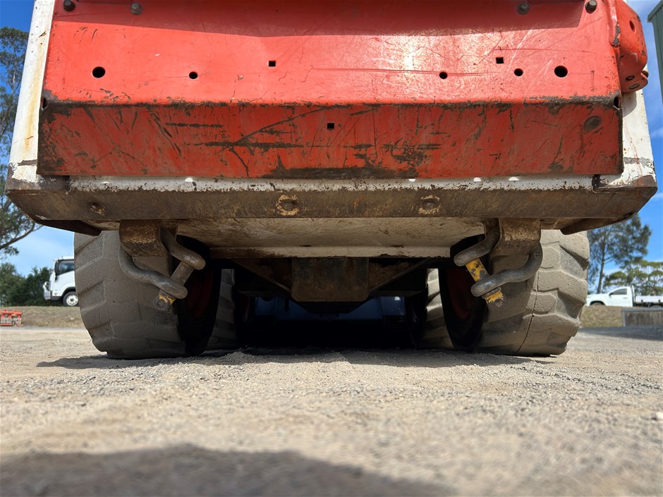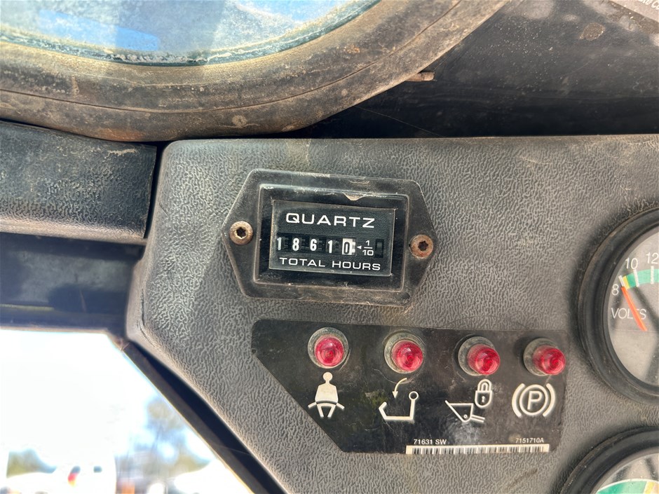 • Damage: Dents and surface rust around bucket, paint damage and surface rust on boom, paint damage and rust around body, dents around boom and body, tyres low on tread, marks and wear around interior, vinyl on interior rear panel is peeling off, handbrake is in poor condition, machine slowly lurches forward when controls are at rest, L/W fan doesn`t work, using coolant