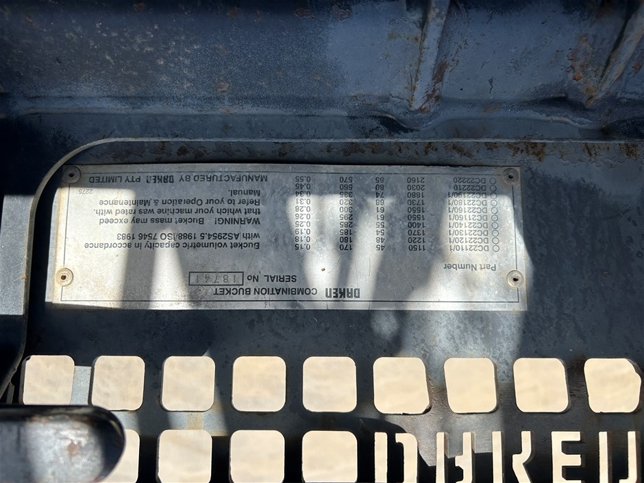 • Attachments: BucketManufacturer: DakenModel: Combination BucketSerial Number: 18741