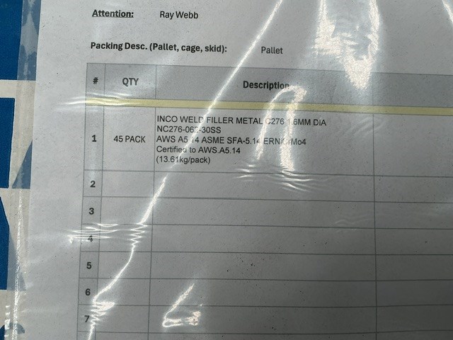 INCO-WELD 1.6mm C-276 Welding Wire Pallet of
