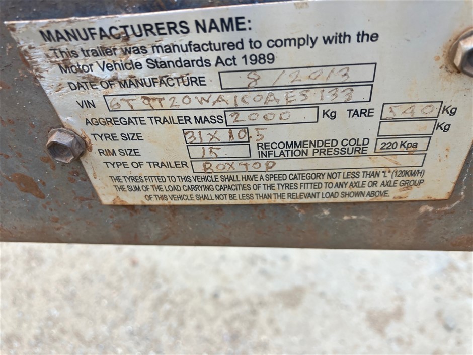 2012 SOUTHWEST Trailer - 8 x 5 - Tandem Axle - Heavy Duty - Port Hedland