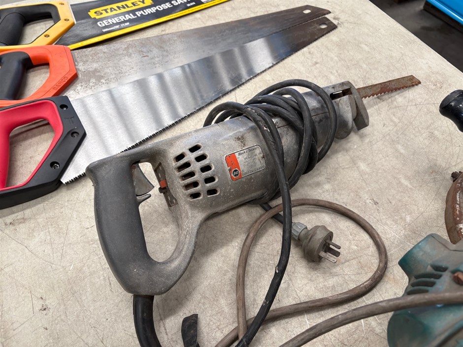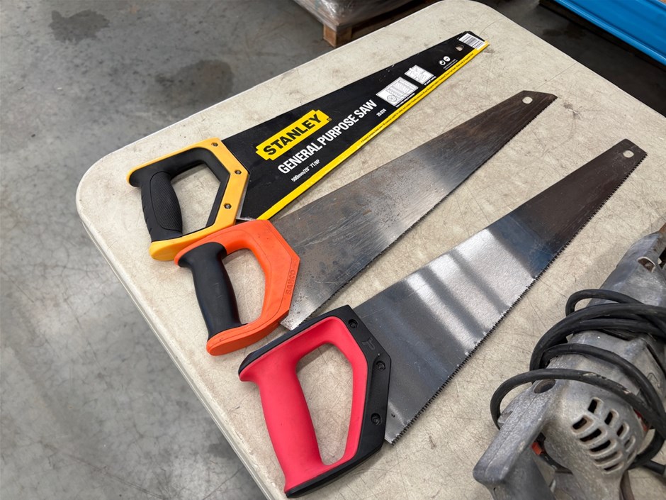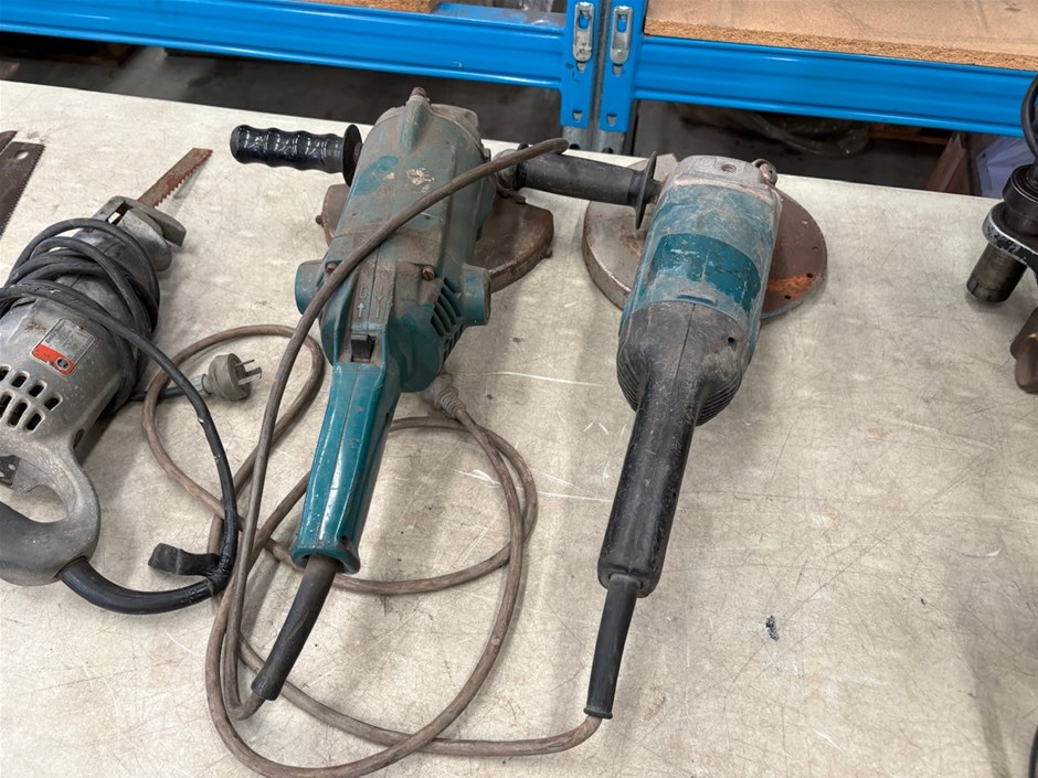 • 2x Atra Ace Mag Drills2x Angle Grinders (1 Makita and 1 unbranded)1x Black and Decker Recip Saw3x Hand sawsNone of the power tools have been tested and may be beyond economic repair.