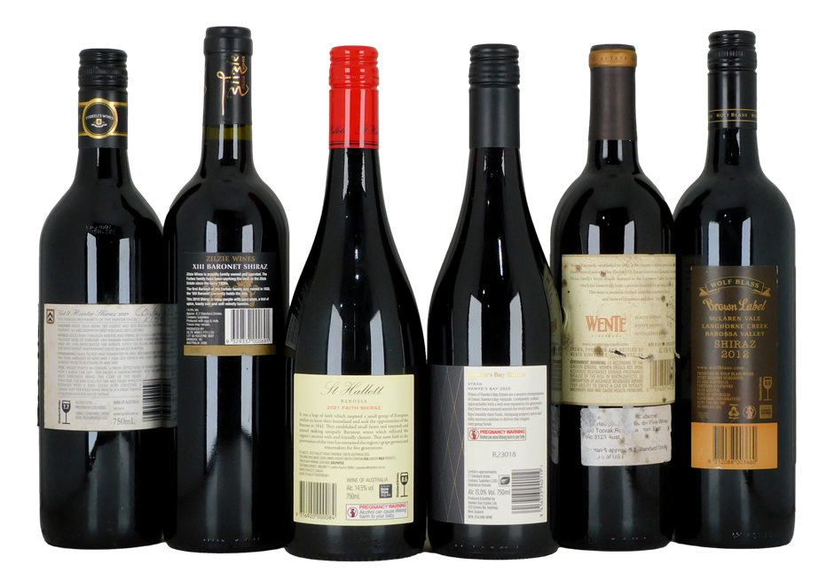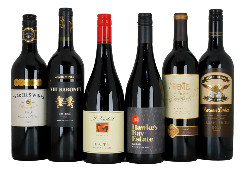 St Hallet, Faith, Barossa Shiraz 2021 750mL 1tyrrell`s Wines Vat 9 Shiraz 2009 750mL Hunter 1Wolf Blass, Brown Label Shiraz 2012 750mL Barossa 1XIII Baronet, Zilzie, VIC Shiraz 2019 750mL 1Hawkes Bay Estate, New Zealand Syrah 2020 750mL 1Wente, Beyer Ranch Zinfandel 2008 750mL California 1