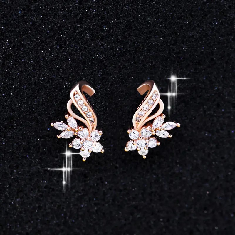 This Earrings is made from Elegant 18K Rose Gold plated Flower Design Cz Earrings