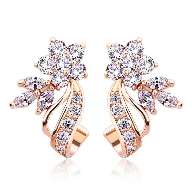 Elegant 18K Rose Gold plated Flower Design Cz Earrings