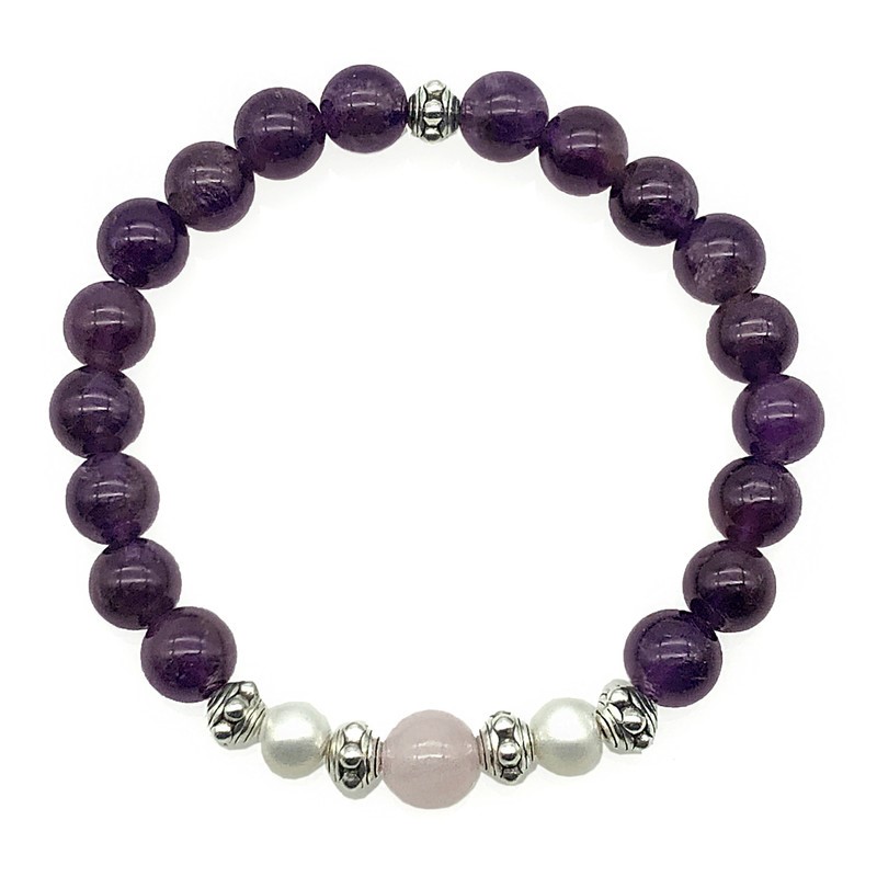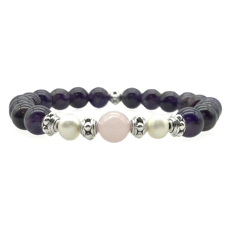 Amethyst, Rose Quartz & Freshwater Pearls Stretchy Bracelet