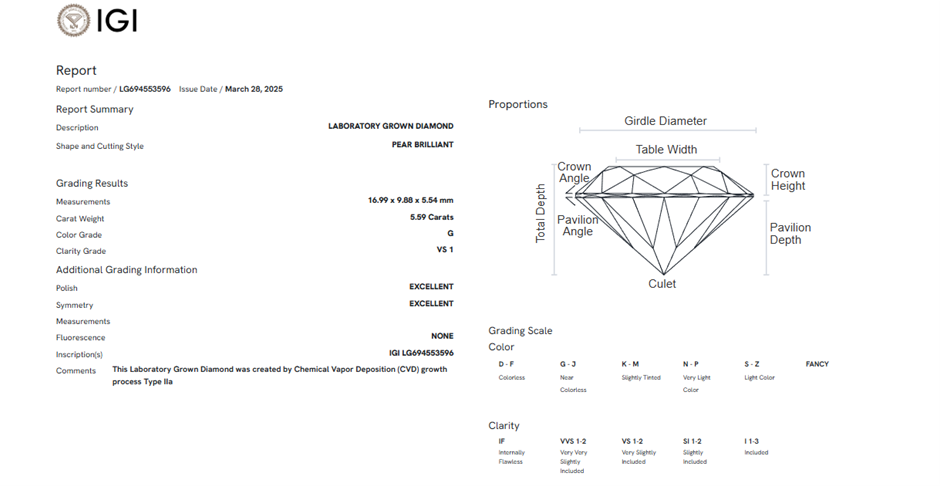 | Part of Sale | IGI Certified Lab Grown Diamonds Collection | ||||
