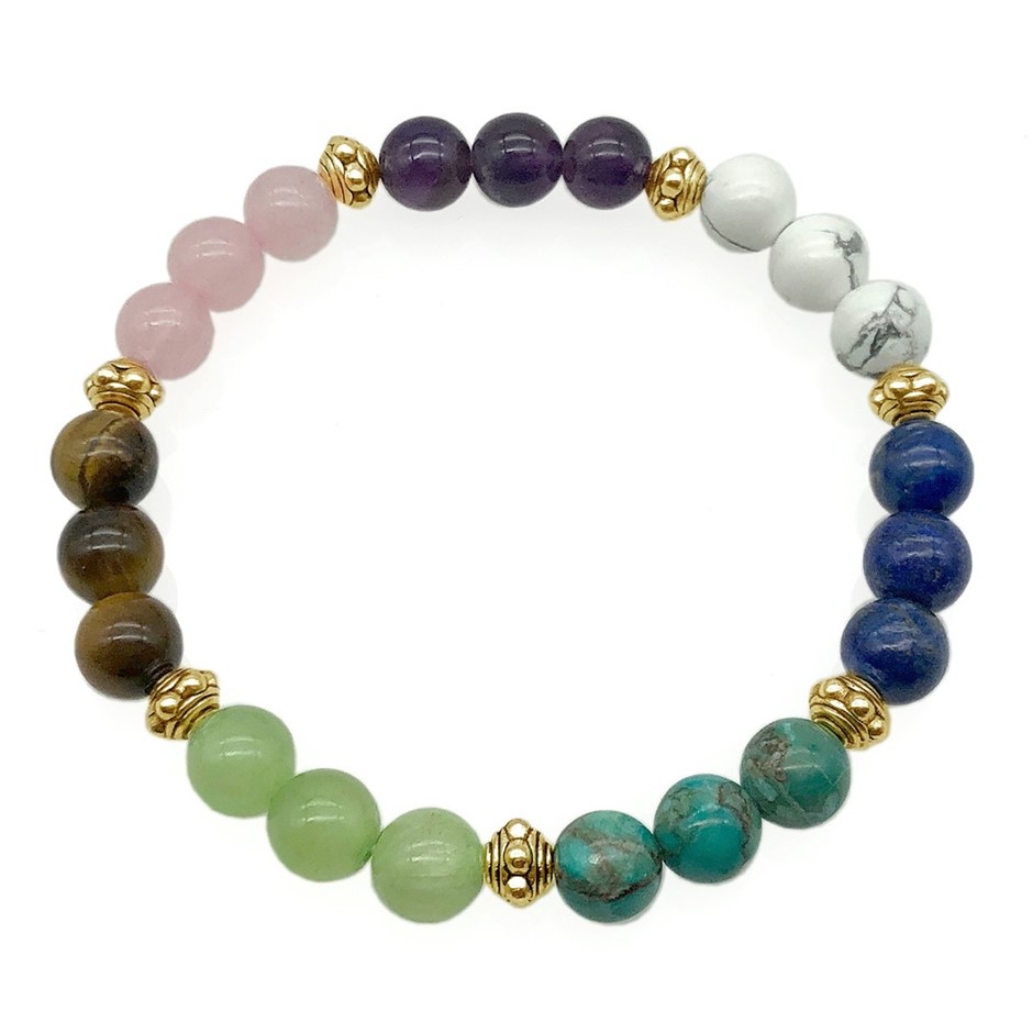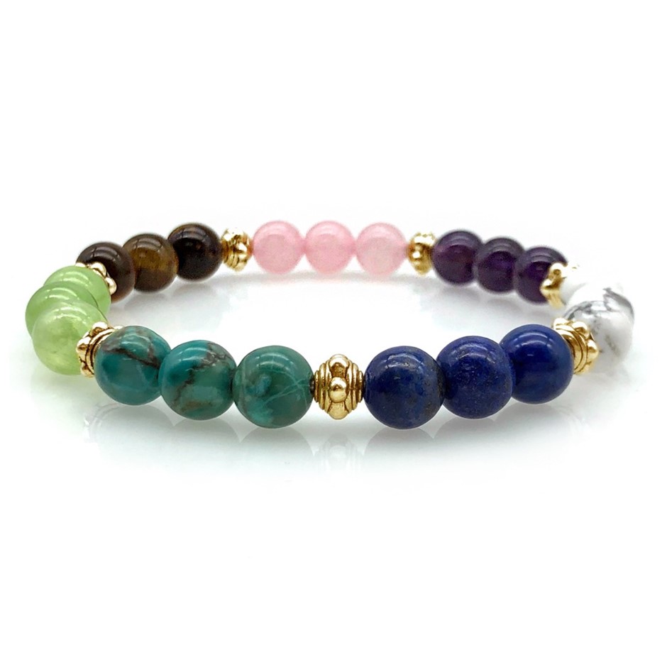 Multi Gemstone & Antique Gold Spacer Bead Beaded Stretchy Bracelet.
